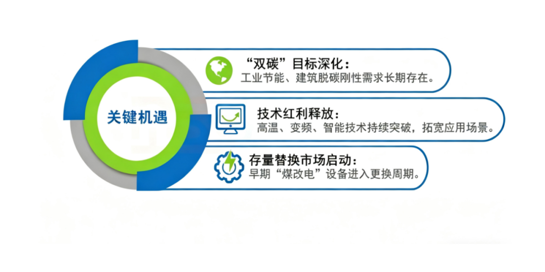 早期“煤改電”政策下投入使用的設(shè)備已逐漸進入更換周期,疊加新建筑、新工業(yè)項目的新增需求,空氣能市場形成“存量替換+增量增長”的雙驅(qū)動格局。