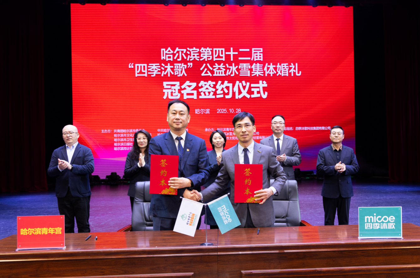 儀式上,哈爾濱青年宮與四季沐歌集團(tuán)完成簽約,同步啟動(dòng)全國(guó)新人征集。即日起至2025年12月12日,全國(guó)適齡新人可通過四季沐歌集團(tuán)公眾號(hào)“婚禮報(bào)名”入口踴躍報(bào)名,婚禮盛典將于2026年1月6日在哈爾濱冰雪大世界啟幕,新人們將在冰雕城堡前交換誓言。