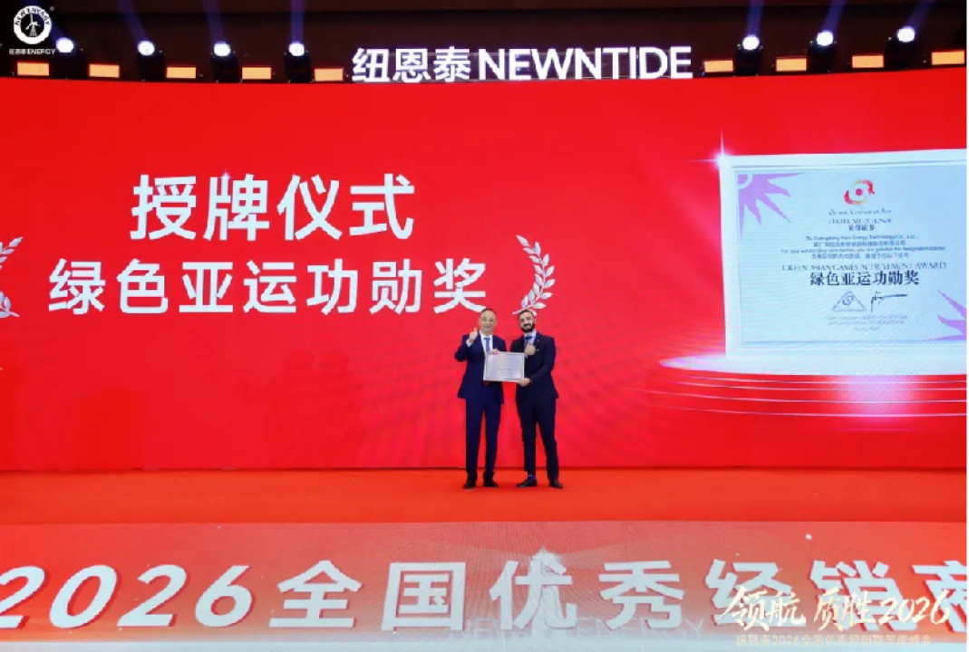 峰會(huì)現(xiàn)場(chǎng)迎來(lái)重磅授牌時(shí)刻,亞奧理事會(huì)發(fā)展及國(guó)家?jiàn)W委會(huì)關(guān)系主任維薩姆·特爾克馬尼Wissam Trkmani親臨現(xiàn)場(chǎng),為紐恩泰頒發(fā)“綠色亞運(yùn)功勛獎(jiǎng)”。這份沉甸甸的榮譽(yù),是亞奧理事會(huì)對(duì)紐恩泰深耕綠色清潔能源領(lǐng)域、以空氣能技術(shù)助力亞運(yùn)踐行綠色辦賽理念、實(shí)現(xiàn)碳中和目標(biāo)的高度認(rèn)可,既鐫刻著紐恩泰助力頂級(jí)體育賽事的卓越貢獻(xiàn),更彰顯了中國(guó)空氣能品牌的硬核實(shí)力與全球影響力。
