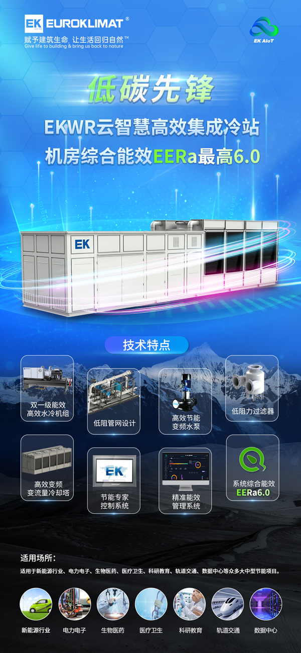 低碳先鋒!EKWR云智慧高效集成冷站,機(jī)房綜合能效EERa最高6.0!