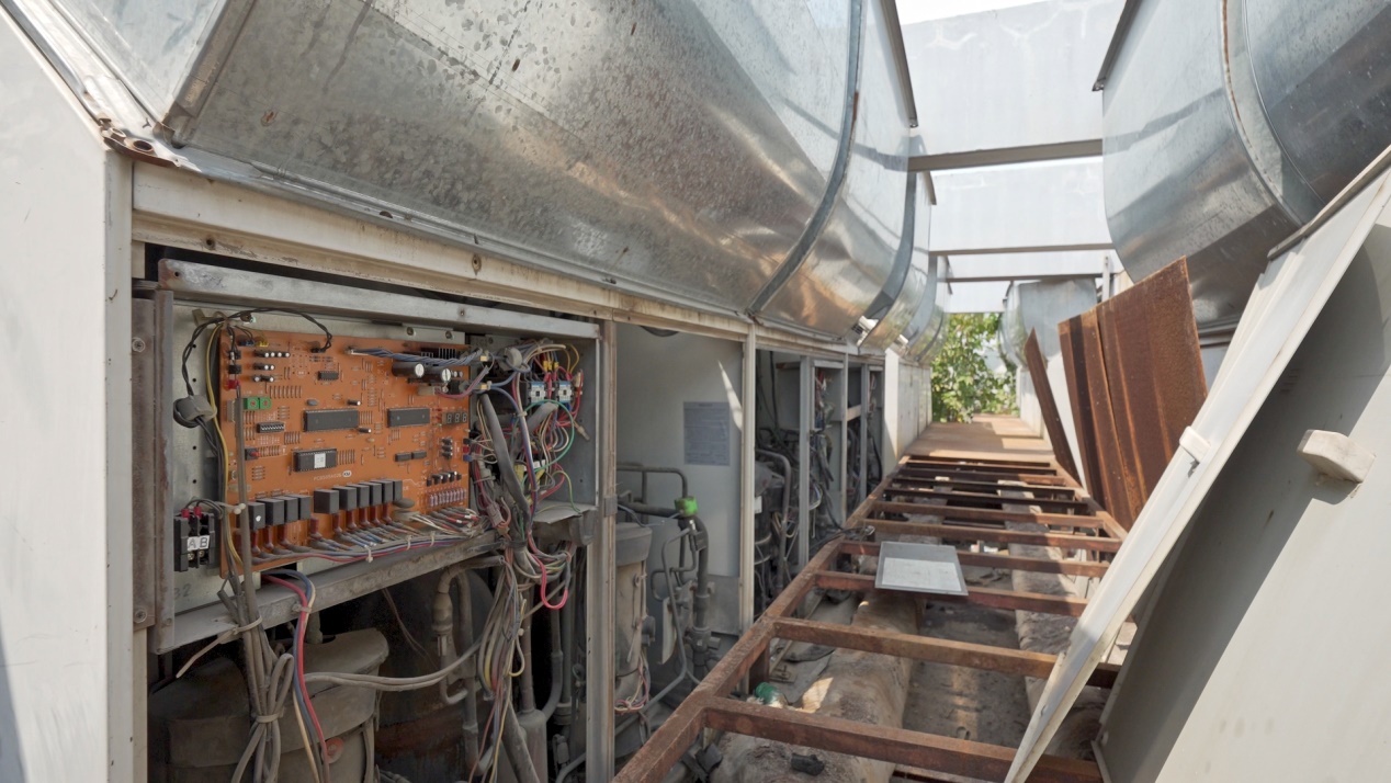 據(jù)了解,總高八層、建筑面積為18000多㎡的陳省身數(shù)學(xué)研究所,之前所用的中央空調(diào)系統(tǒng)是2005年安裝的某日系品牌。據(jù)南開大學(xué)陳省身數(shù)學(xué)研究所辦公室主任張延濤表示,由于省身樓的中央空調(diào)系統(tǒng)使用年限較長,到2023年已有19年了,雖然大部分時候也可以正常使用,但也出現(xiàn)了故障率高、制冷制熱效率比較低等問題,另外,省身樓的中央空調(diào)系統(tǒng)的維修成本也比較高。最關(guān)鍵的是,由于使用年限長、效率衰減,再加上是之前的老產(chǎn)品,省身樓的空調(diào)系統(tǒng)能耗較大,“一個月大概需要9萬度以上的用電,用電量比較高”,因此,節(jié)能改造迫在眉睫。