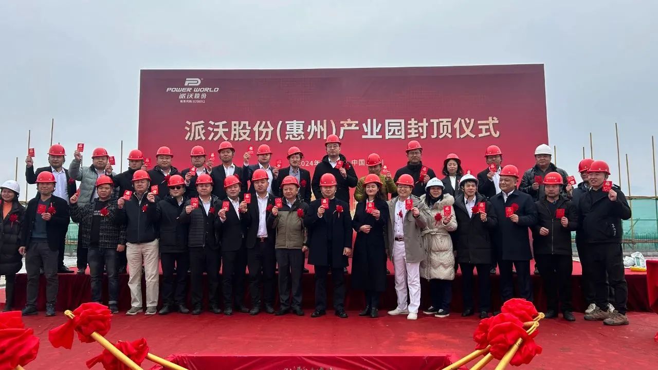 新年新氣象,奮進(jìn)正當(dāng)時(shí)!1月23日,新年開局起步之際,派沃股份惠州智造產(chǎn)業(yè)園封頂儀式圓滿舉辦!項(xiàng)目自2023年6月9日舉辦奠基儀式,短短7個(gè)月時(shí)間的緊鑼密鼓,項(xiàng)目一期8萬㎡于今天完成封頂,為2024年“開門紅”拉開序幕!