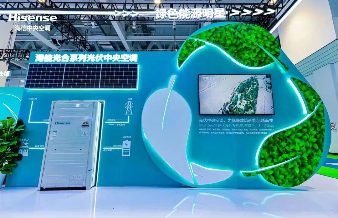 助力“雙碳”,產(chǎn)品先行。自主產(chǎn)品研發(fā)方面,海信日立先后推出一系列新型節(jié)能與環(huán)保產(chǎn)品,如大力開發(fā)節(jié)能型冷水機組,并加強對磁懸浮離心機、螺桿機、模塊機等水機產(chǎn)品開發(fā)力度。憑借高能效、高穩(wěn)定性、高品質(zhì)的綠色創(chuàng)新科技產(chǎn)品矩陣成功贏得市場認(rèn)可。其中,光伏中央空調(diào)充分運用光伏能源技術(shù),幫助城市建筑實現(xiàn)從“耗能大戶”到“節(jié)能之星”的蝶變躍升,引領(lǐng)行業(yè)邁向綠色能源新時代。