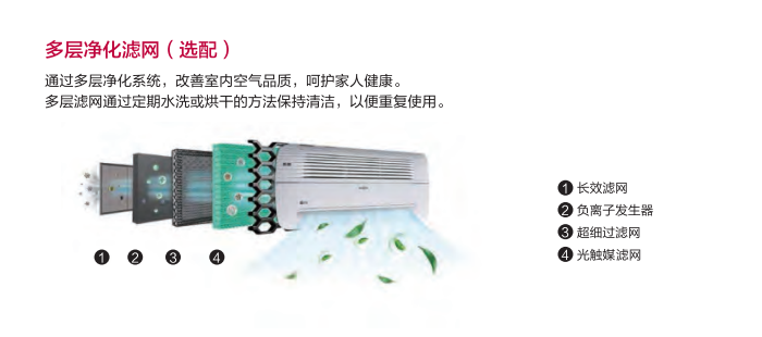 室內(nèi)機(jī)通過(guò)面板實(shí)時(shí)顯示室內(nèi)空氣情況,并通過(guò)選配的多層凈化系統(tǒng)改善空氣品質(zhì),長(zhǎng)效濾網(wǎng)、負(fù)離子發(fā)生器等多重潔凈組合拳,有效保持出風(fēng)清新,讓父母保持健康舒暢呼吸。