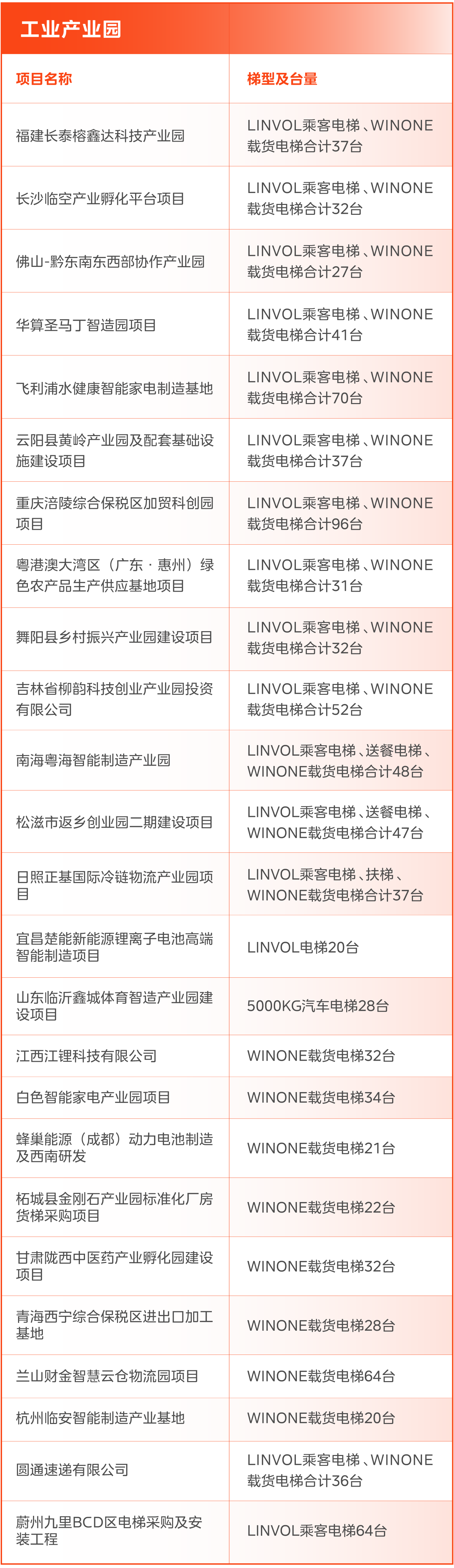一直以來,工業(yè)產(chǎn)業(yè)園對電梯的云運行效率、載貨能力等提出了高要求。WINONE菱王載貨電梯以5噸3m/s和10噸1.5m/s高速載貨、18噸0.5m/s節(jié)能型載貨電梯均行業(yè)領(lǐng)先水平,同時具備50噸0.5m/s速節(jié)能型載貨電梯研發(fā)能力,在工業(yè)產(chǎn)業(yè)園中得到廣泛應(yīng)用。