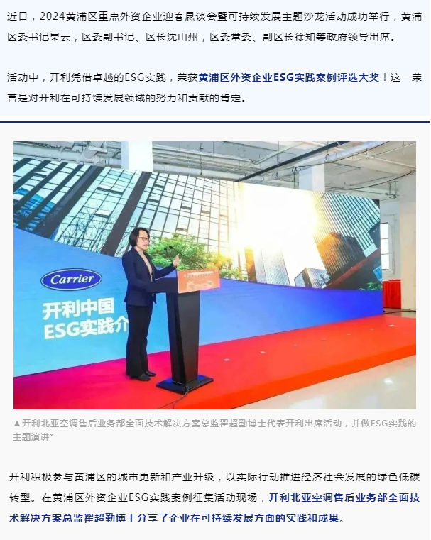 開利榮獲黃浦區(qū)外資企業(yè)ESG實踐案例評選大獎!-冷暖資訊-冷暖商情