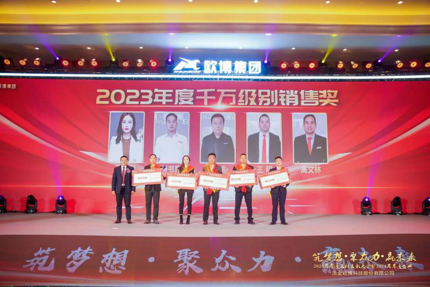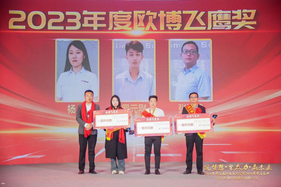 連續(xù)15年兩位數(shù)增長,2023年自然年度增長30%,歐博股份亮眼成績的取得,是全體歐博人共同努力的結(jié)果,為進(jìn)一步激發(fā)全體歐博人艱苦奮斗、干事創(chuàng)業(yè)的動力,為公司的發(fā)展貢獻(xiàn)先進(jìn)力量,歐博股份設(shè)立了戰(zhàn)狼團(tuán)隊(duì)獎、歐博金鷹獎、歐博飛鷹獎、千萬級別銷售獎、優(yōu)秀管理獎等獎項(xiàng),對年度先進(jìn)個人、先進(jìn)集體進(jìn)行榮譽(yù)表彰。