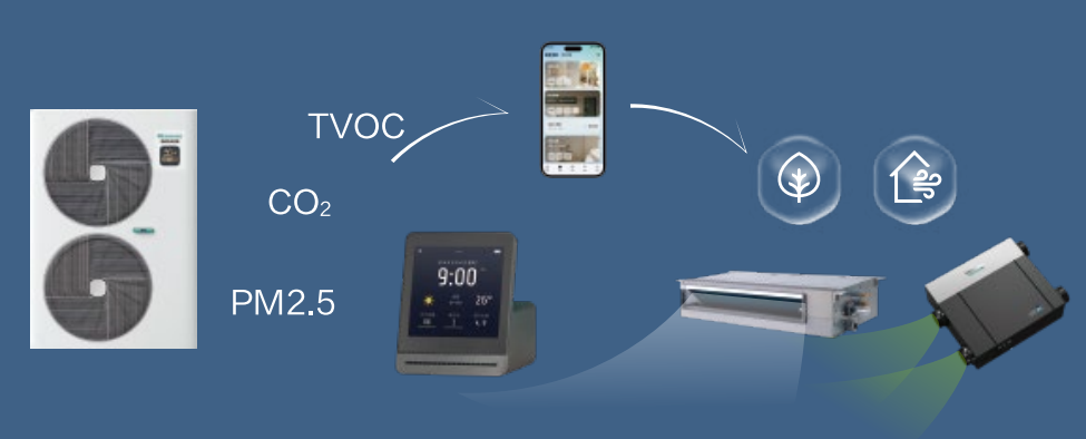 當檢測到室內(nèi)CO?、PM2.5、TVOC濃度超標