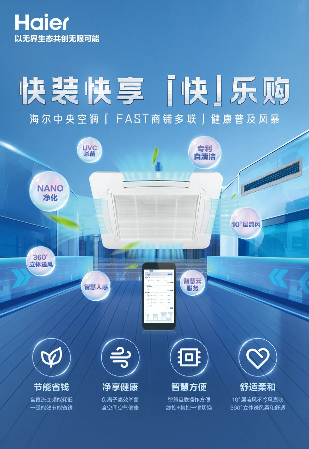 對中小型商鋪來說,商鋪空氣環(huán)境的好壞往往關(guān)系到用戶最直接的體驗(yàn)。海爾中央空調(diào)堅(jiān)持用戶需求至上,推出「FAST商鋪多聯(lián)」系列產(chǎn)品,憑借節(jié)能、健康、智慧、舒適等產(chǎn)品特性,全方位滿足用戶需求,提升用戶體驗(yàn)。