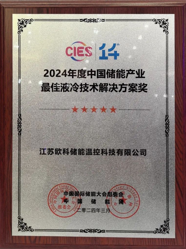 展會(huì)同期舉辦“儲(chǔ)能之夜”招待晚宴暨2024年度中國(guó)儲(chǔ)能產(chǎn)業(yè)最具影響力系列獎(jiǎng)項(xiàng)頒獎(jiǎng)盛典。EK憑借其精確控制、節(jié)能高效、智能管理、適應(yīng)性強(qiáng)以及環(huán)??沙掷m(xù)等方面的儲(chǔ)能溫控技術(shù)創(chuàng)新和優(yōu)化亮點(diǎn),榮膺“2024年度中國(guó)儲(chǔ)能產(chǎn)業(yè)最佳液冷技術(shù)解決方案獎(jiǎng)”。