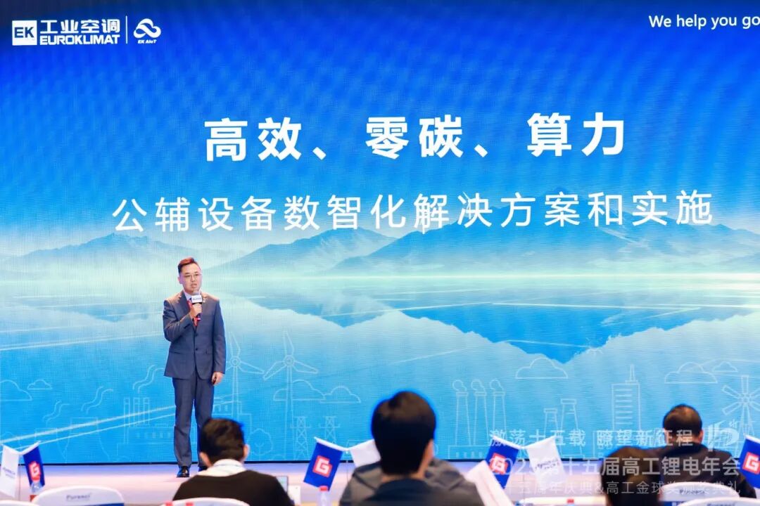 11月19日下午,在EK工業(yè)空調(diào)冠名的 “極限效率與極致降本” 專場論壇上,EK中國區(qū)市場營銷總監(jiān)兼工業(yè)環(huán)境控制事業(yè)部總監(jiān)王健發(fā)表《高效、零碳、算力——公輔設(shè)備數(shù)智化解決方案和實(shí)施》主題演講,深入闡述EK工業(yè)空調(diào)在鋰電產(chǎn)業(yè)節(jié)能降本中的系統(tǒng)思考與實(shí)踐。