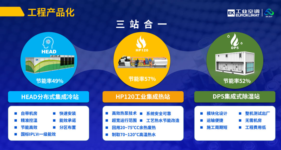 工程產(chǎn)品化方面,推出HEAD分布式集成冷站、HP120工業(yè)集成熱站、DP5集成式除濕站等集成方案,實(shí)現(xiàn)從單一設(shè)備到系統(tǒng)解決方案的全面升級,高效快捷,縮短項(xiàng)目施工周期。