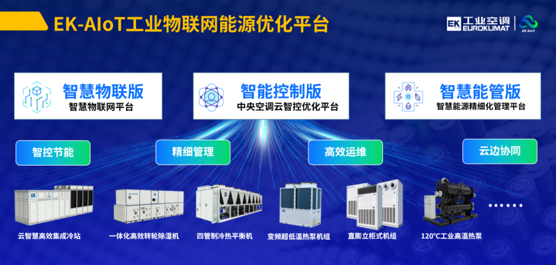 基于此,EK工業(yè)空調(diào)圍繞“節(jié)能與低碳”“工程產(chǎn)品化”“數(shù)智化運(yùn)維”三大核心戰(zhàn)略,通過對冷熱源與環(huán)境控制進(jìn)行系統(tǒng)節(jié)能設(shè)計(jì)SED,并通過數(shù)智化運(yùn)維讓啞巴設(shè)備開口說話,全面助力行業(yè)節(jié)能降碳與能效升級。