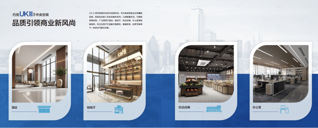 產(chǎn)品是夯實(shí)市場(chǎng)競(jìng)爭(zhēng)力的永續(xù)核心。此次會(huì)議期間,約克VRF旗下多場(chǎng)景產(chǎn)品解決方案重磅亮相。其中,約克UK III系列作為主推產(chǎn)品備受關(guān)注。該系列承載約克百年品質(zhì)積淀,專為高品質(zhì)商業(yè)空間量身定制,包含嵌入機(jī)和風(fēng)管機(jī)系列,具備配置靈活、可靠耐用、高效節(jié)能等核心優(yōu)勢(shì),可廣泛適用于酒店、咖啡廳、街邊店鋪、辦公室等輕商場(chǎng)所,不僅能提供可靠的溫度調(diào)控支持,更能助力用戶實(shí)現(xiàn)綠色低碳運(yùn)營,為打造標(biāo)桿解決方案賦予有力支撐。