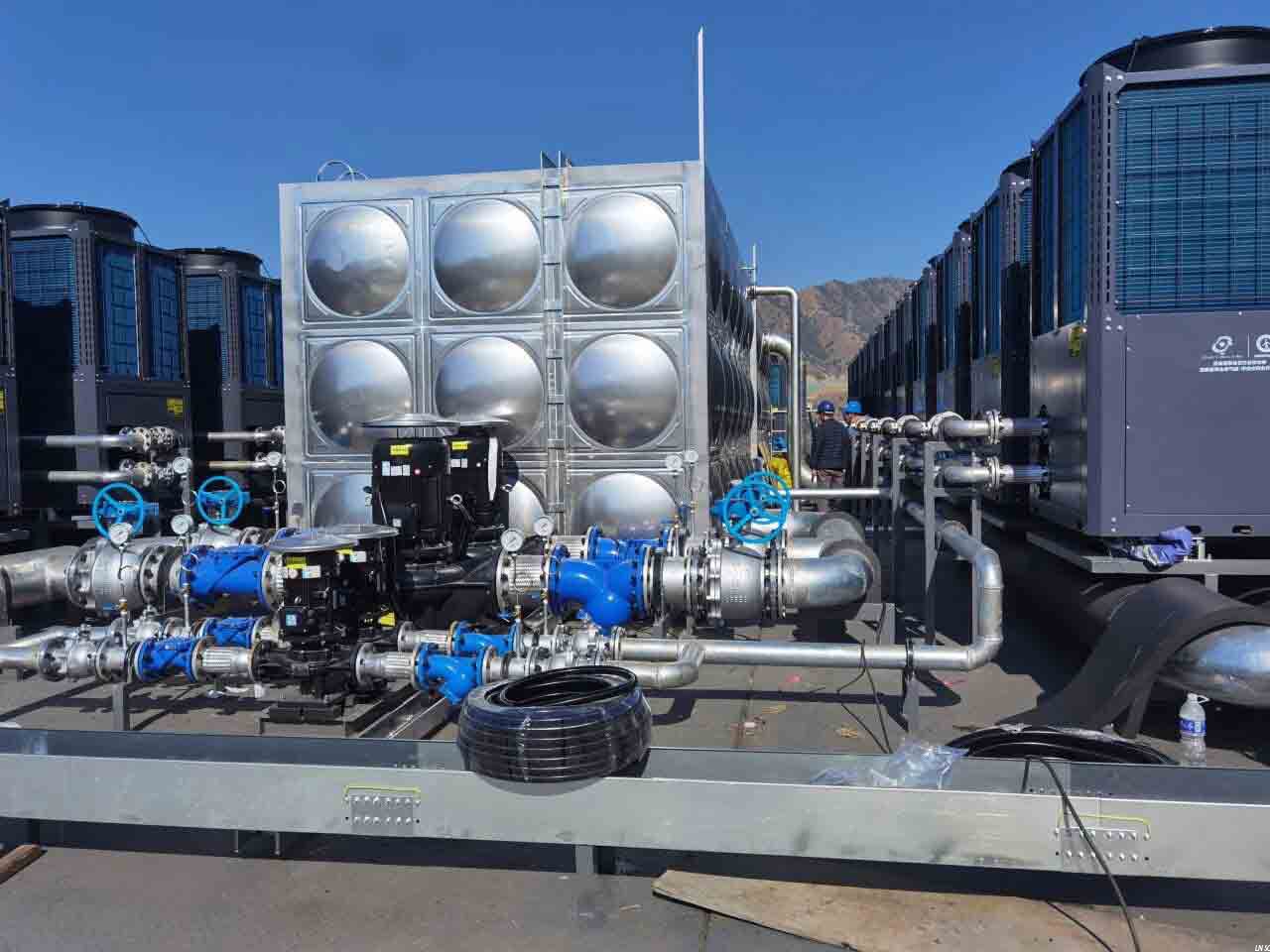 龍佰集團攀枝花生產(chǎn)基地坐落于四川省攀枝花市鹽邊縣,是我國重要的鈦白粉及鈦金屬生產(chǎn)基地之一。在冶煉生產(chǎn)流程中,需大量使用高溫熱水進行藥劑融化與工藝處理,原有電鍋爐加熱方式雖能滿足溫度要求,但能耗高、運行成本大,每小時耗電量高達2000kW,且存在能源利用率低、維護復(fù)雜等問題。廠區(qū)迫切需要一套既能穩(wěn)定供應(yīng)高溫熱水,又能大幅降低能耗與碳排放的新型供熱方案。經(jīng)過多方考察,龍佰集團最終選定紐恩泰空氣能高溫熱水系統(tǒng),對原有供熱方式進行全面改造。