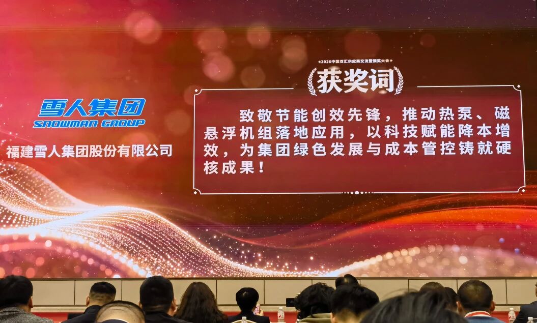 2026雙匯供應(yīng)商交流暨頒獎大會在雙匯總部隆重舉行。作為雙匯集團(tuán)長期的親密合作伙伴,雪人集團(tuán)成為本屆大會唯一受邀授獎的制冷行業(yè)企業(yè),并憑借熱泵與磁懸浮機(jī)組兩類核心產(chǎn)品,為雙匯集團(tuán)降本增效做出突出貢獻(xiàn),榮膺雙匯“年度創(chuàng)新獎”。
