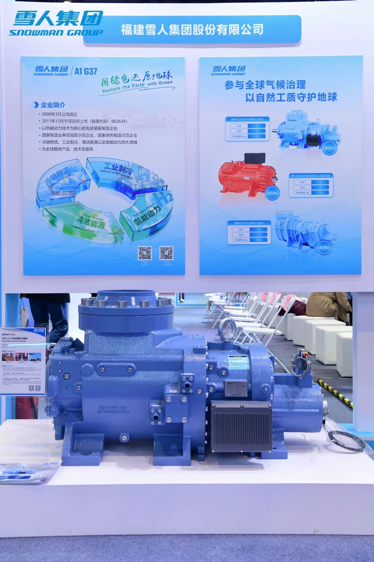 在主展位,雪人設(shè)置熱泵展區(qū)、RefComp展區(qū)、食品冷鏈展區(qū)、無(wú)油離心壓縮機(jī)展區(qū)、制冰系統(tǒng)解決方案展區(qū)五大展區(qū),全面展現(xiàn)在冷暖領(lǐng)域的全鏈條技術(shù)實(shí)力與綠色發(fā)展理念。