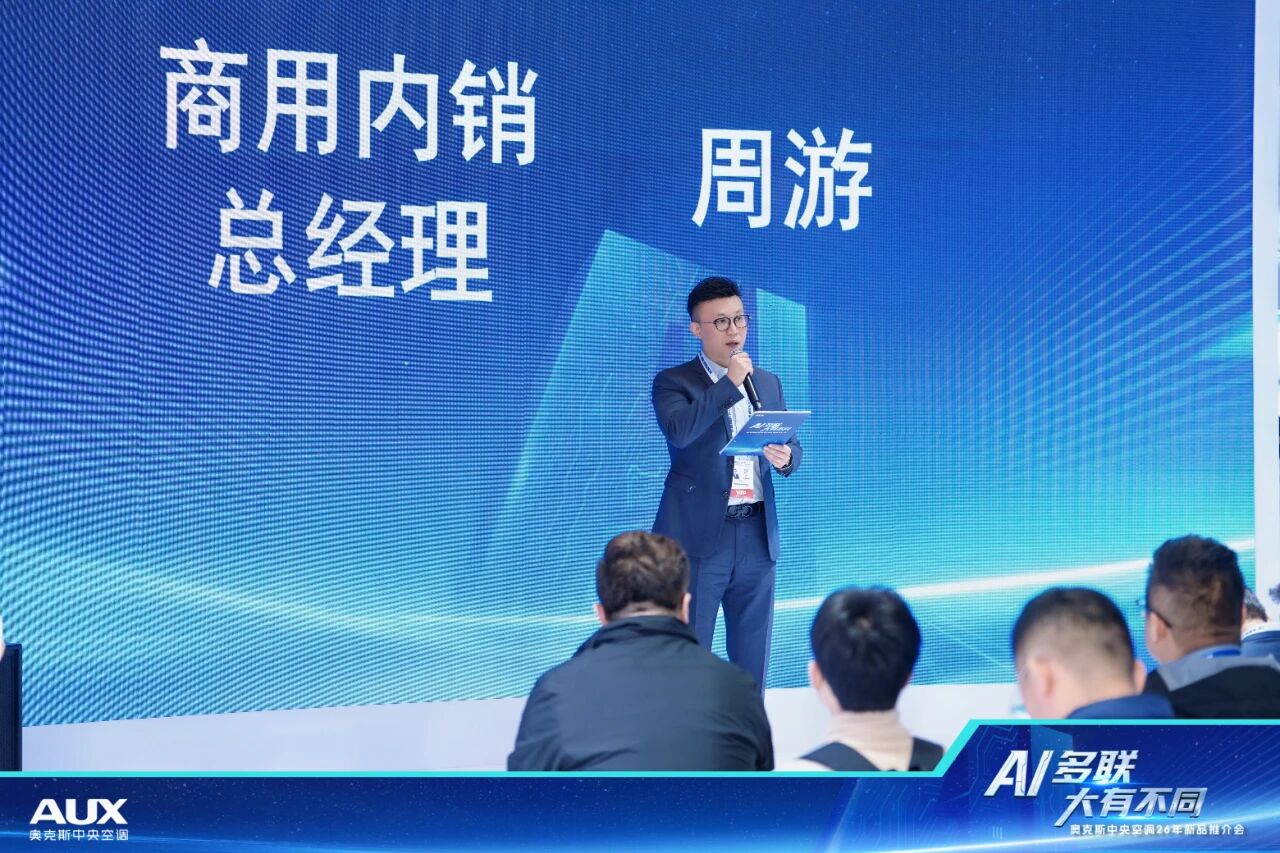 在熱烈的掌聲中,奧克斯商用內(nèi)銷(xiāo)總經(jīng)理周游先生率先致辭。
