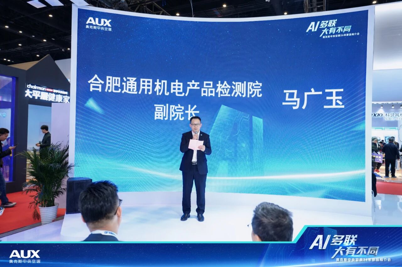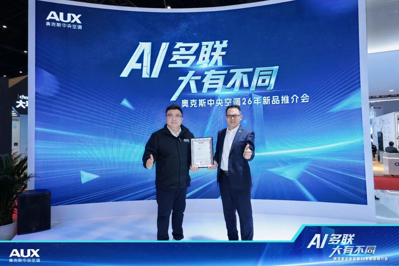 下午,奧克斯在B1G07展位舉行“AI多聯(lián) 大有不同”2026年新品推介會(huì)。中國(guó)制冷空調(diào)工業(yè)協(xié)會(huì)執(zhí)行秘書(shū)長(zhǎng)、合肥通用機(jī)電產(chǎn)品檢測(cè)院副院長(zhǎng)、北京中冷通質(zhì)量認(rèn)證中心有限公司總經(jīng)理馬廣玉先生,奧克斯商用總經(jīng)理葉魯偉先生,奧克斯商用內(nèi)銷(xiāo)總經(jīng)理周游先生,奧克斯商用研發(fā)總監(jiān)宋銘先生,奧克斯商用研發(fā)副總監(jiān)劉合心先生等嘉賓出席。