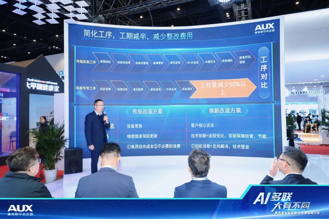 X9 RE無(wú)感換新解決方案展區(qū),多位觀眾就老舊建筑中央空調(diào)“改造難、成本高、工期長(zhǎng)”等痛點(diǎn)與工作人員交流。該方案以“四省兩新,無(wú)感換新”價(jià)值直擊用戶(hù)核心訴求: