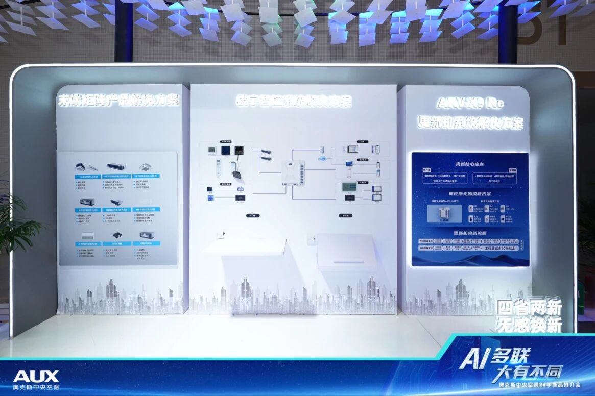 除了多聯(lián)機(jī)產(chǎn)品,奧克斯展臺(tái)上重點(diǎn)展示樓宇智控整體解決方案,通過(guò)AI算法對(duì)建筑內(nèi)的空調(diào)系統(tǒng)進(jìn)行集中調(diào)度與能耗優(yōu)化,助力建筑向智慧低碳轉(zhuǎn)型。