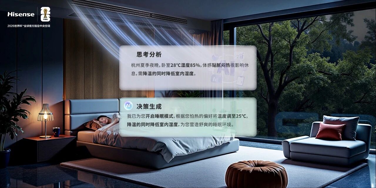 尤為值得關(guān)注的是,ThinkAir2.0在空氣健康上再度升級(jí),集成Ai家IIPRO豐富的設(shè)備資源,融合星海大模型能力與海信中央空調(diào)數(shù)十年在空氣領(lǐng)域的專業(yè)沉淀,成功實(shí)現(xiàn)了“感知-思考-決策-執(zhí)行”全鏈路閉環(huán)的空氣智能體——AI空氣健康管家。依托這一核心能力,它能實(shí)時(shí)捕捉室內(nèi)各類空氣數(shù)據(jù),3秒極速響應(yīng),24小時(shí)全天候主動(dòng)調(diào)控,無需手動(dòng)干預(yù),始終維持室內(nèi)空氣最佳狀態(tài)。