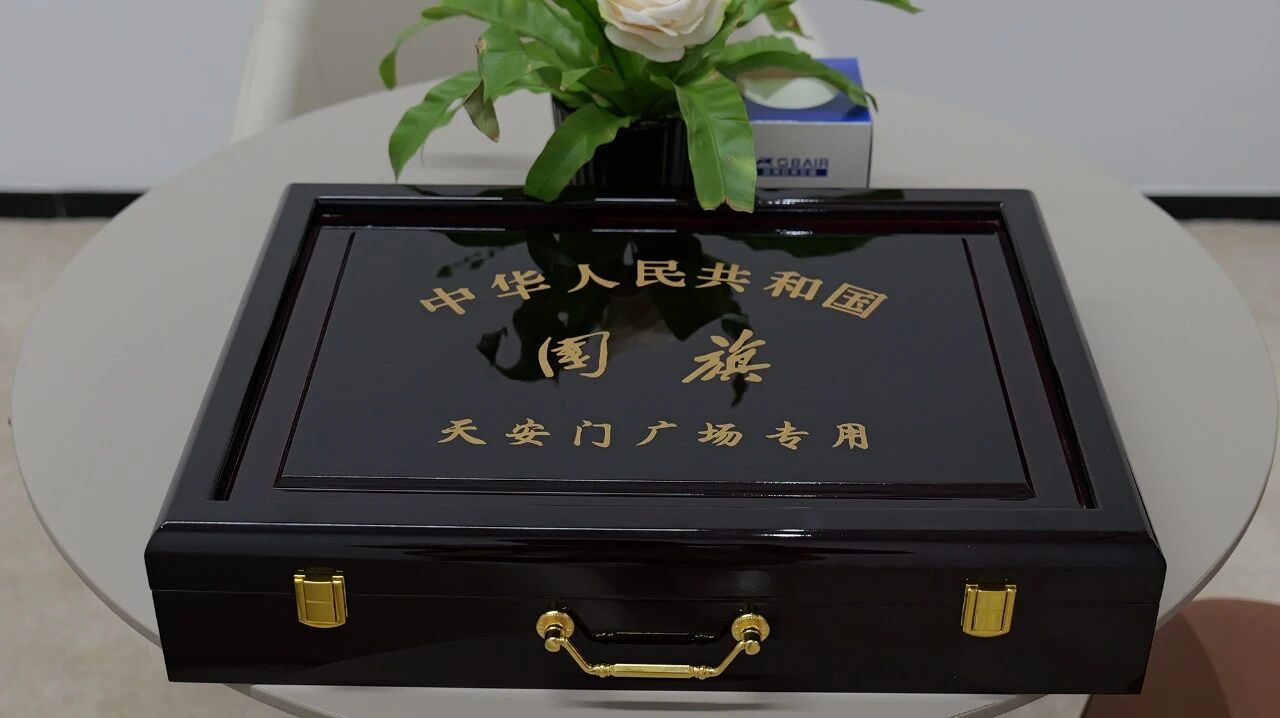 隨后,董事長懷著無比崇敬的心情,緩緩打開了裝有國旗的專用箱子。他雙手微微顫抖,小心翼翼地從箱中捧出那面鮮艷的五星紅旗。