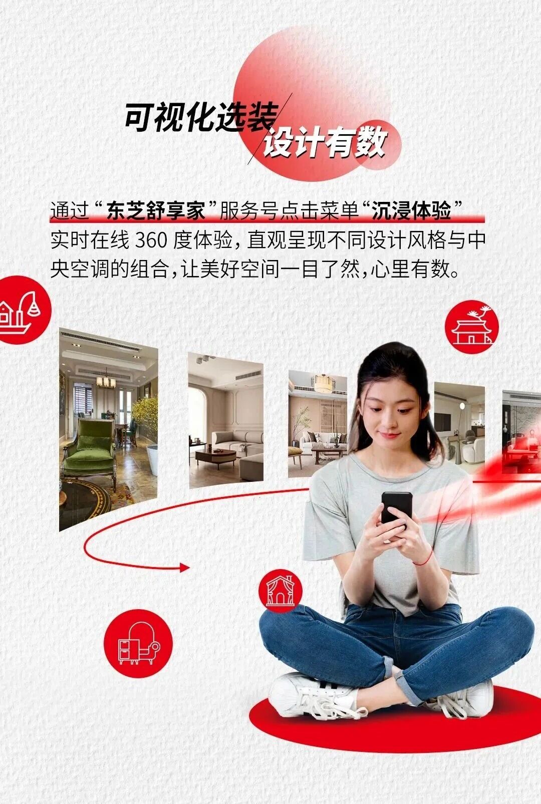 東芝空調(diào)芝匠安裝數(shù)字化平臺“可視化選裝”功能,讓這一切不再是想象!用戶只需在“東芝舒享家”服務號點擊“沉浸體驗”菜單,即可實時在線感受360度場景呈現(xiàn),不同設計風格與中央空調(diào)的組合效果一目了然。這種沉浸式體驗將抽象的設計構想轉化為具象畫面,讓年輕用戶在選裝初期就能“心里有數(shù)”,從源頭避免了“裝完后悔”的隱患。