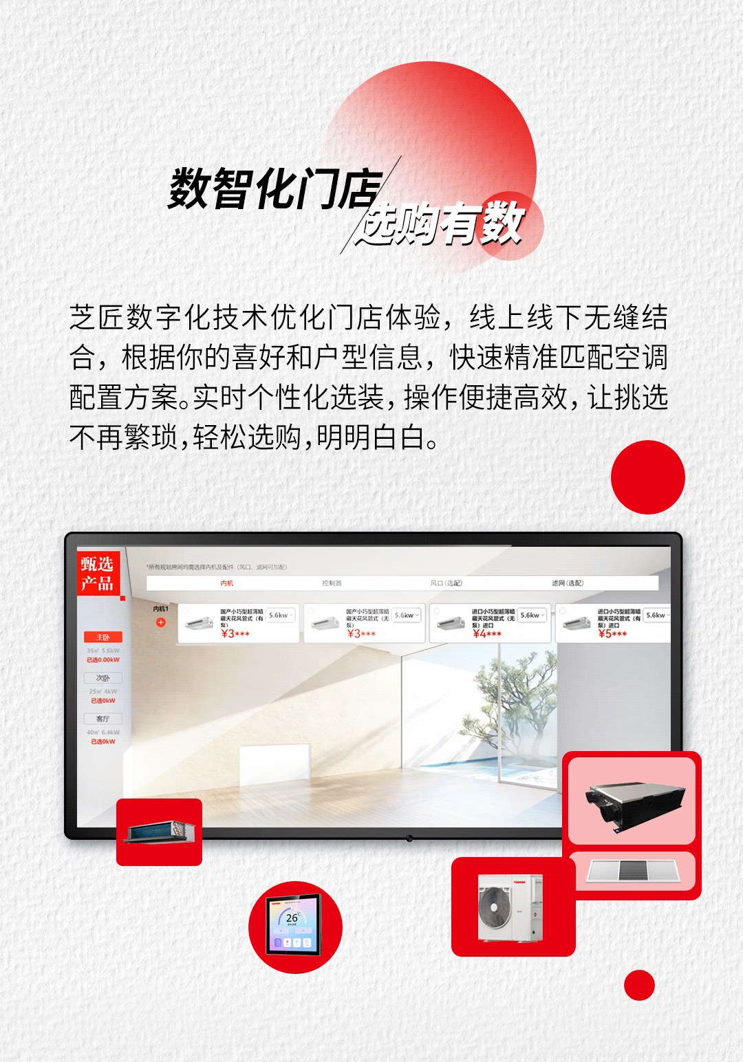 東芝空調(diào)芝匠安裝數(shù)字化平臺打造的“數(shù)智化門店”,通過線上線下無縫銜接的模式破解難題。用戶輸入戶型信息與個性化喜好后,數(shù)字化系統(tǒng)快速精準匹配空調(diào)配置方案,實時生成個性化選裝建議。無需繁瑣比對與反復溝通,系統(tǒng)即可實現(xiàn)方案的高效優(yōu)化,讓選購過程從“被動接受”變?yōu)?ldquo;主動掌控”,真正做到明明白白消費、輕松便捷選購。