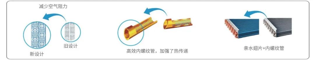 新設(shè)計(jì)的窗口翅片和擴(kuò)大換熱面積,降低空氣阻力,節(jié)省更多功率并提高性能;親水鋁箔翅片和內(nèi)螺紋銅管可優(yōu)化熱交換效率;特殊涂層的藍(lán)色翅片可提高耐用性,并防止空氣、水和其他腐蝕劑腐蝕,確保盤管使用壽命更長(zhǎng)。