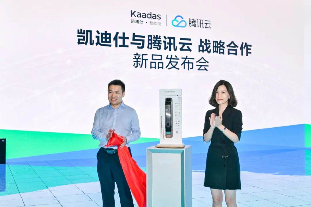 展會現場舉行了凱迪仕與騰訊云戰(zhàn)略合作新品發(fā)布會,凱迪仕常務副總經理兼董事長助理李顯、騰訊云手機及智能硬件行業(yè)商務總經理王敏出席發(fā)布會并致辭。