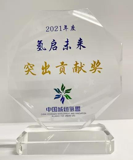 為表彰萬(wàn)和對(duì)氫能利用技術(shù)發(fā)展的貢獻(xiàn),在2021年10月20日舉行的城燃?xì)涿说谝淮纬蓡T代表大會(huì)上,萬(wàn)和成為"氫啟未來"突出貢獻(xiàn)獎(jiǎng)的唯一獲獎(jiǎng)企業(yè),城燃?xì)涿颂匮鹕绞懈笔虚L(zhǎng)許國(guó)先生為萬(wàn)和代表頒獎(jiǎng)。