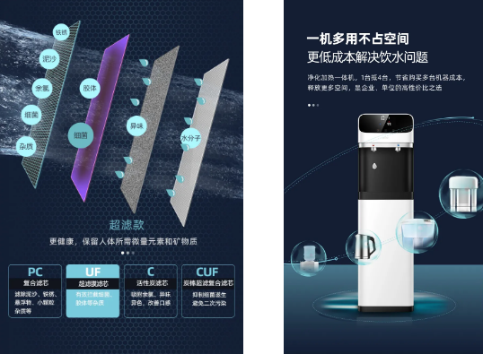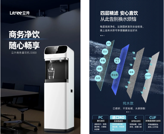 立升商務(wù)直飲機(jī),分為純水款和超濾款兩款,均采用四層精濾。