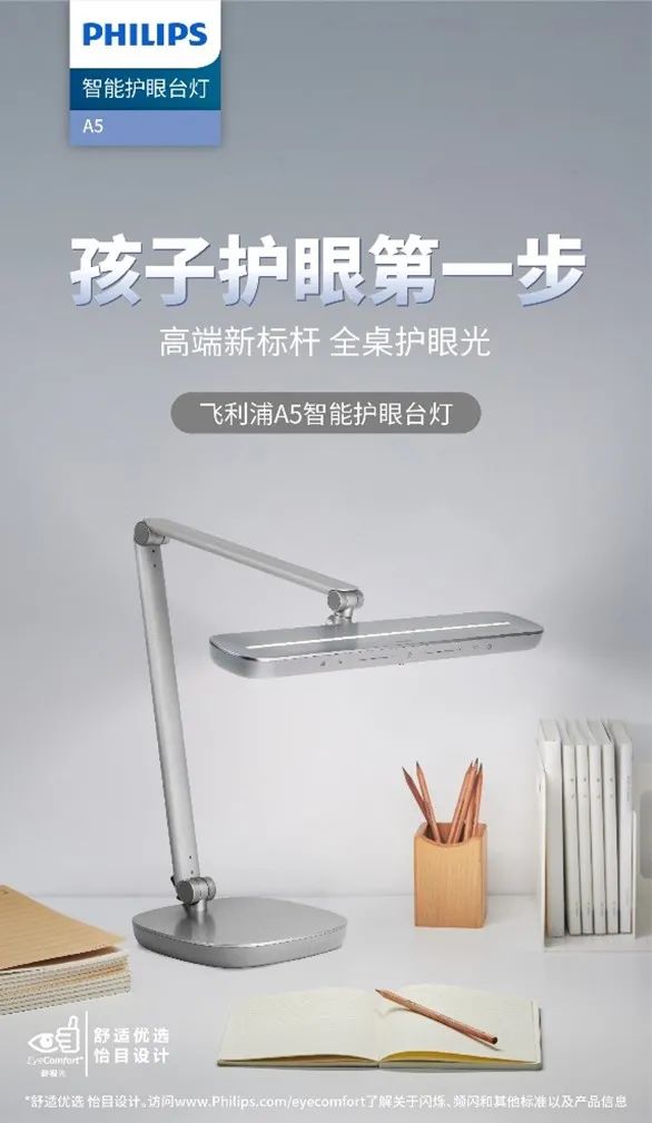 隨著后疫情時代生活方式的改變,兒童在室內(nèi)學習的時間越來越長,保護孩子用眼健康,打造適宜的用光環(huán)境成為了媽媽們的急切需求。飛利浦A5智能護眼臺燈專為學齡前及小學低年級兒童設計,以專業(yè)燈光設計和權威護眼功能守護孩子視力健康,為孩子提供卓越貼心的桌面照明體驗。