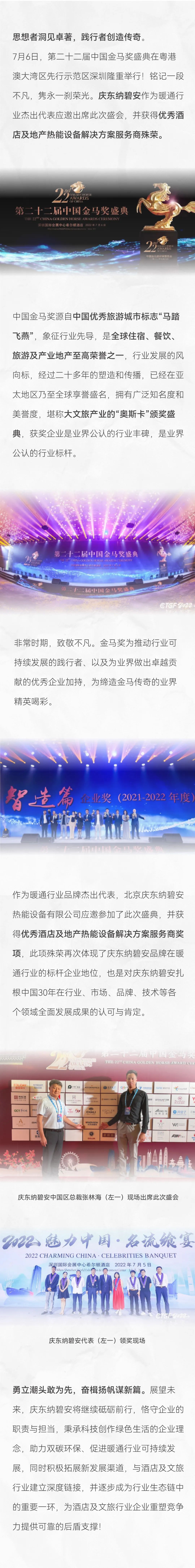 慶東納碧安獲得第二十二屆中國金馬獎優(yōu)秀酒店及地產(chǎn)熱能設(shè)備解決方案服務(wù)商殊榮-資訊-冷暖商情