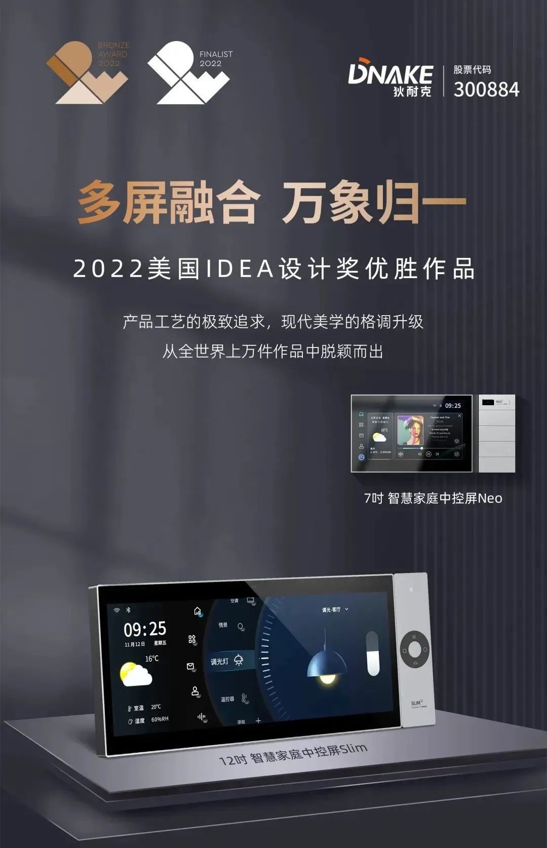 狄耐克智慧家庭中控屏斬獲2022美國(guó)IDEA設(shè)計(jì)大獎(jiǎng)