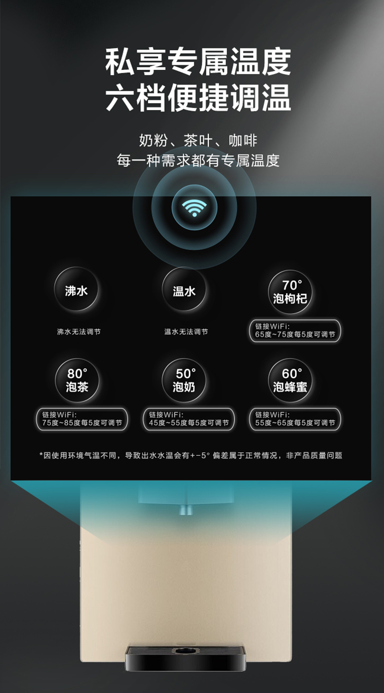 美的906A-R擁有2000W速熱大功率,3秒即熱,新鮮活水時(shí)刻恭候直飲所需;同時(shí)配備WiFi智控控溫系統(tǒng),輕松兼容六檔便捷調(diào)溫,多種專(zhuān)屬溫度完美匹配日常生活飲水、沖泡需求。