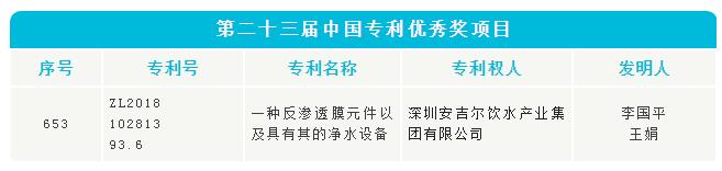 安吉爾長(zhǎng)效反滲透技術(shù)專利榮獲中國(guó)專利優(yōu)秀獎(jiǎng)!-資訊-冷暖商情