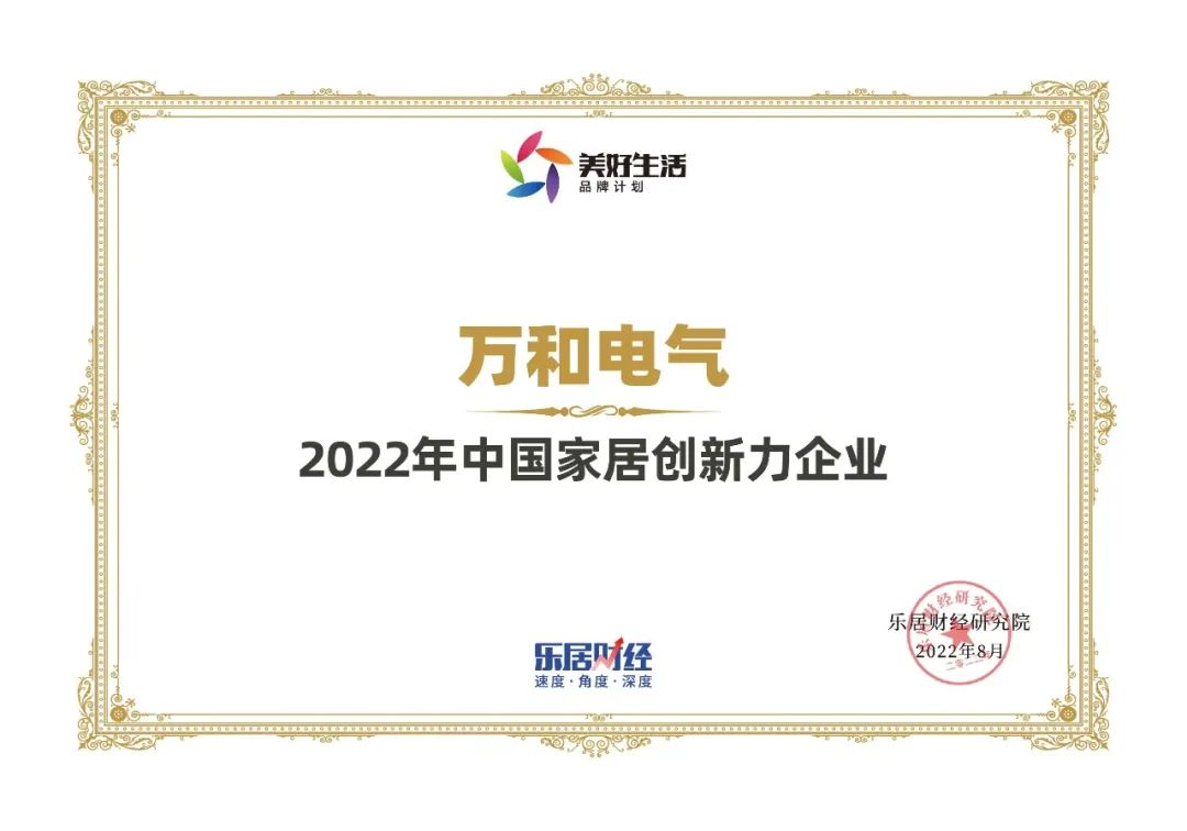 萬和榮膺“2022年中國家居創(chuàng)新力企業(yè)”