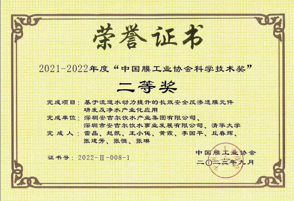 安吉爾榮獲中國膜工業(yè)協(xié)會科學(xué)技術(shù)獎二等獎