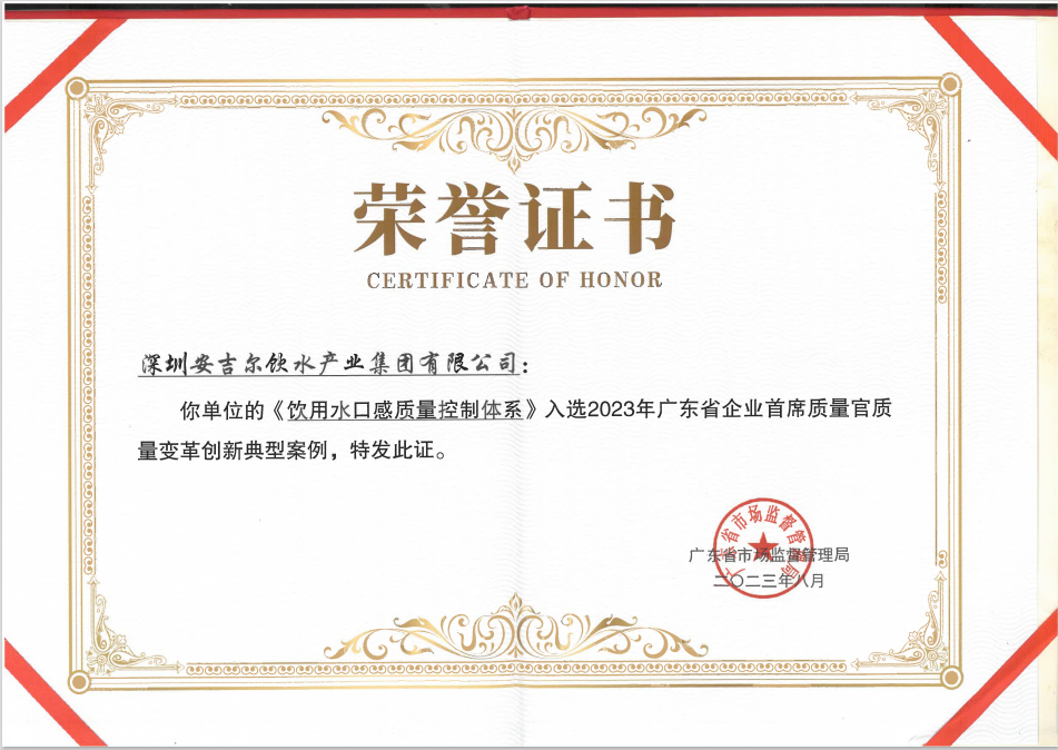 安吉爾《飲用水口感質(zhì)量控制體系》獲評廣東省企業(yè)質(zhì)量變革創(chuàng)新典型案例