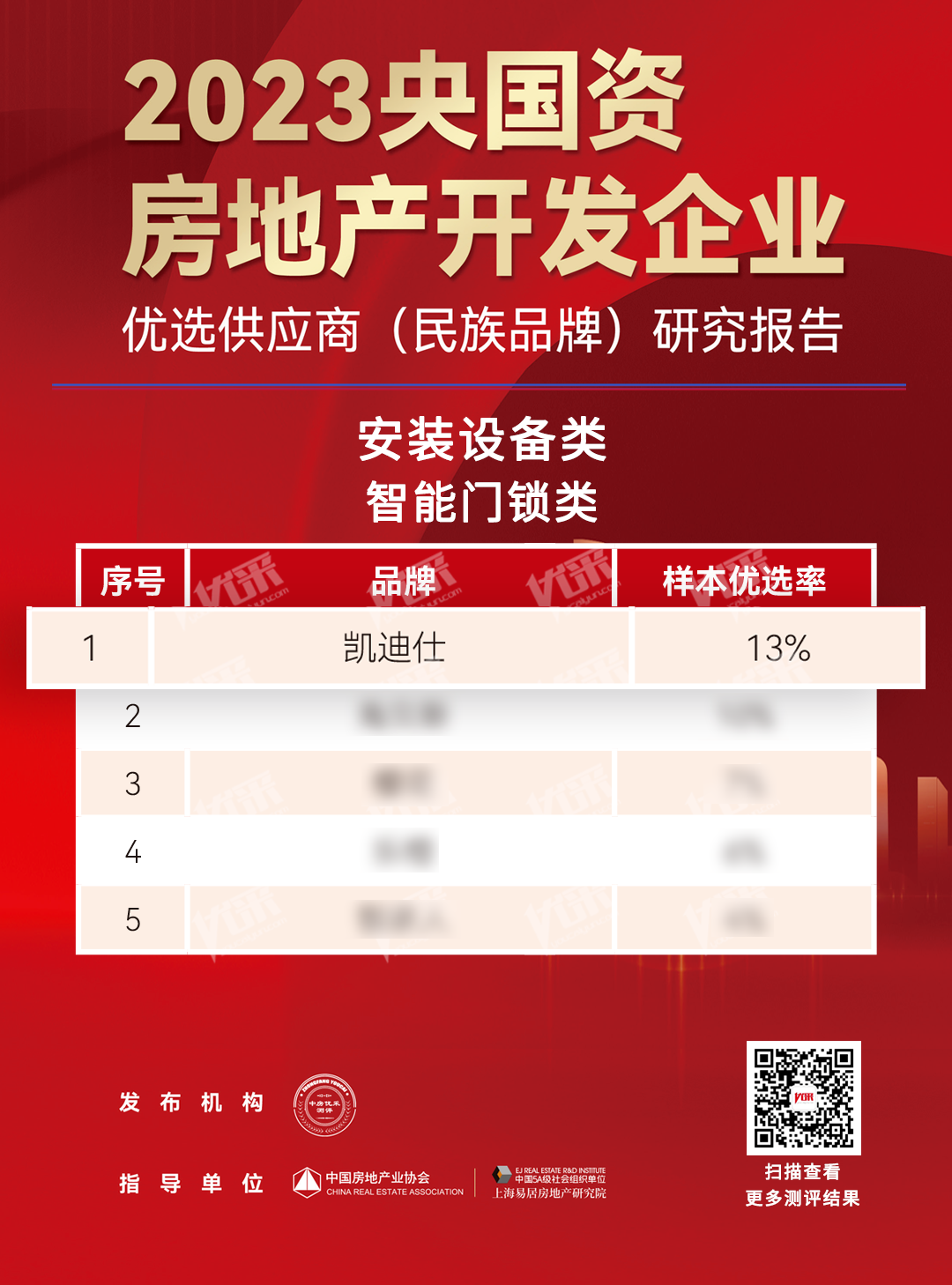位列第一!Kaadas凱迪仕智能鎖榮獲“2023央國資房地產(chǎn)開發(fā)企業(yè)優(yōu)選供應(yīng)商(民族品牌)”稱號!