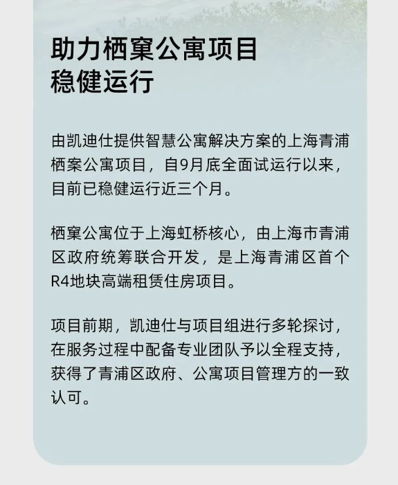 凱迪仕助力棲窠公寓項(xiàng)目穩(wěn)健運(yùn)行,軟硬件一體化解決方案再添新案例