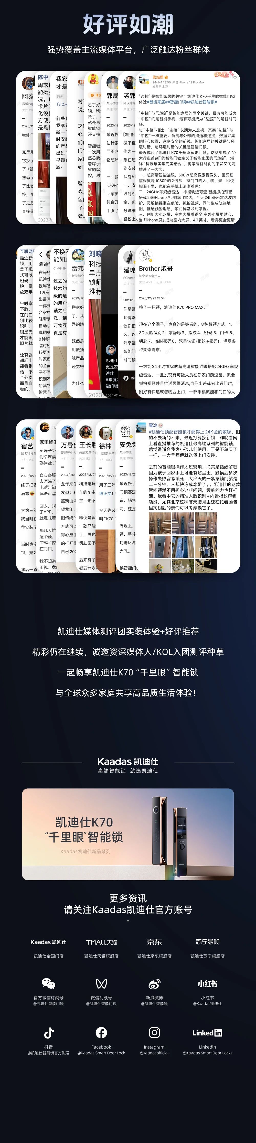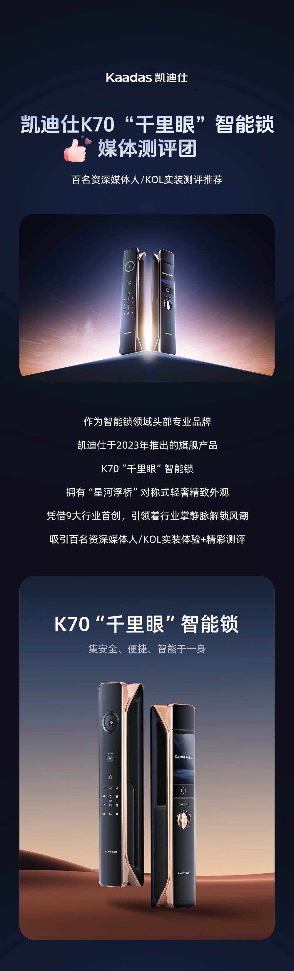 凱迪仕K70“千里眼”智能鎖媒體測評團首批亮相!百名資深媒體人/KOL實裝測評推薦!