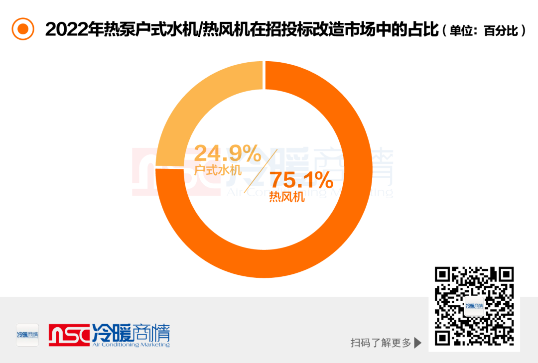 2022年招投標清潔采暖改造市場中,熱泵戶式水機招投標總量下滑,但基于前幾年“煤改電”項目的改造升級,戶式水機產(chǎn)品在市場中已經(jīng)起到積極傳播作用,市場接受度越來越高,戶水零售規(guī)模在同步增長。加之,“煤價”上漲,熱泵企業(yè)多年深耕一線,挖掘市場需求,或許將給未來市場帶來更多可發(fā)揮的有利空間。