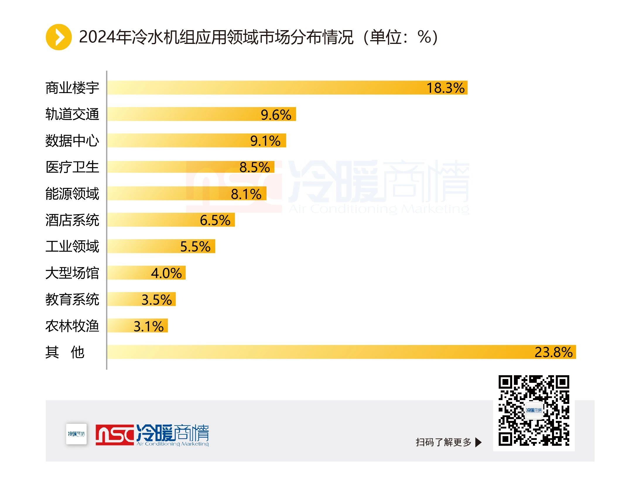 隨著國(guó)家對(duì)綠色低碳發(fā)展的高度重視,建筑、工業(yè)等領(lǐng)域的節(jié)能降碳已成為城市更新不可或缺的一環(huán)。在此背景下,作為高端配套產(chǎn)品的中央空調(diào)冷水機(jī)設(shè)備,在商業(yè)樓宇、軌道交通、數(shù)據(jù)中心、醫(yī)療衛(wèi)生、新能源、儲(chǔ)能、核電、化工等主要應(yīng)用領(lǐng)域展現(xiàn)出強(qiáng)大的市場(chǎng)滲透力與競(jìng)爭(zhēng)力。更是“兩新”戰(zhàn)略和新基建政策重點(diǎn)關(guān)注的范疇。