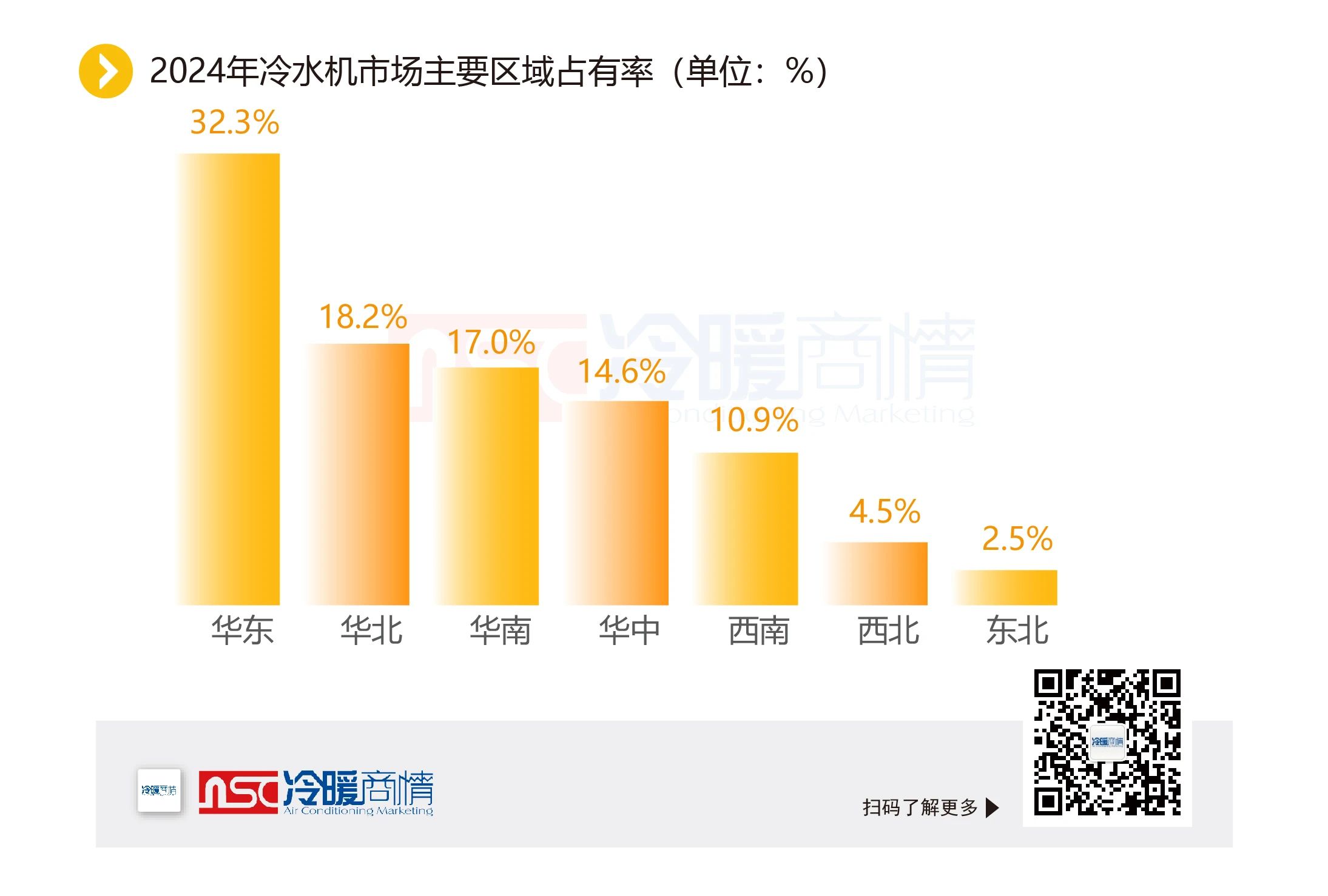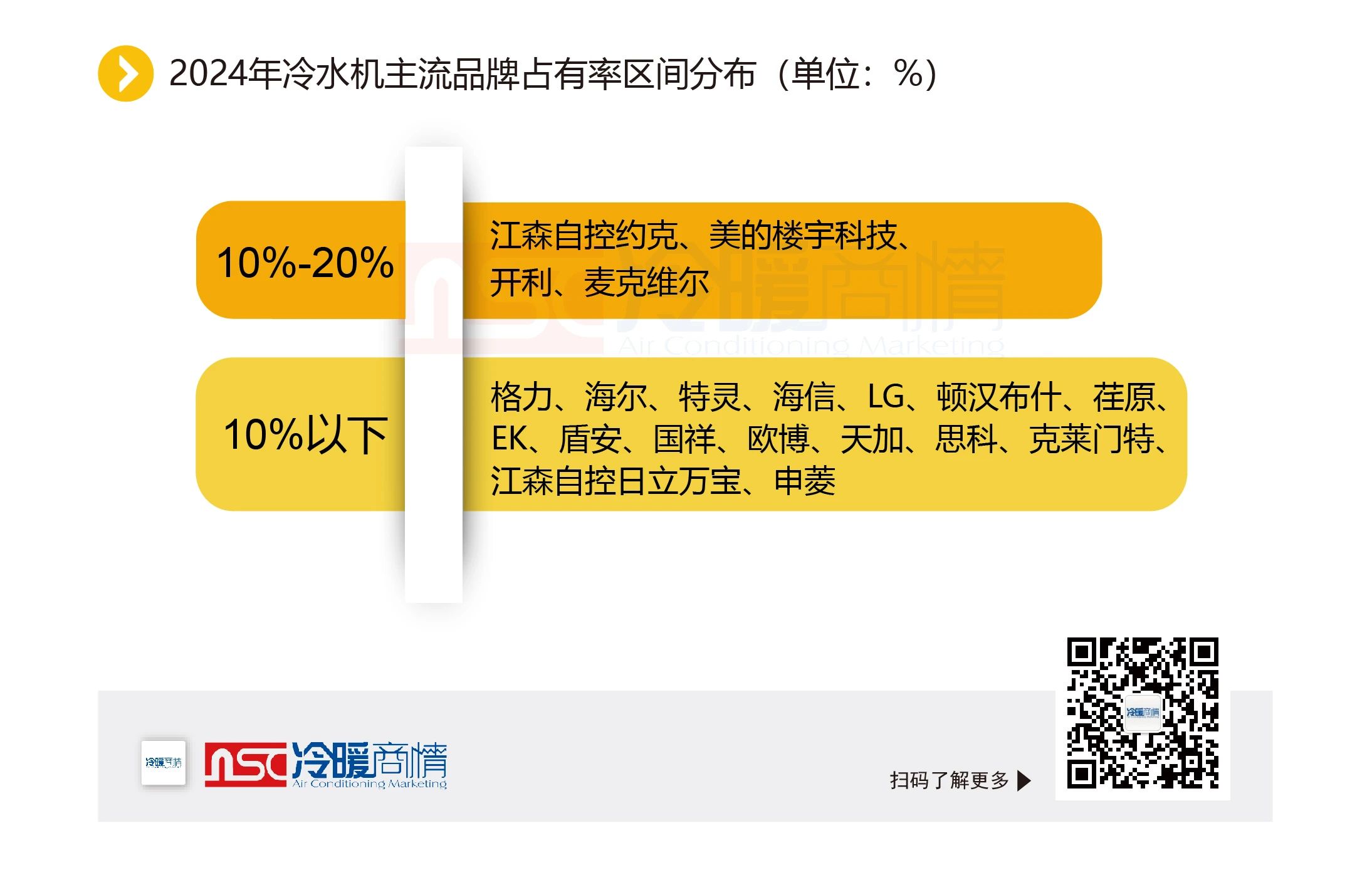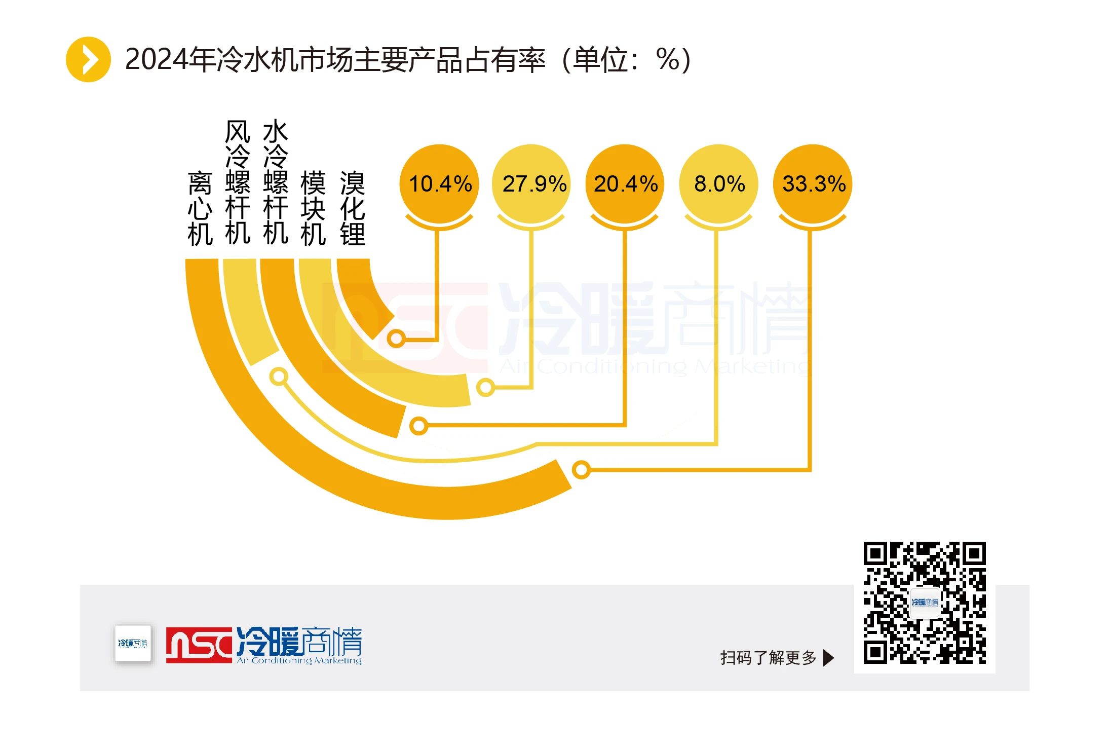 2024年面臨經(jīng)濟(jì)下行,市場(chǎng)環(huán)境復(fù)雜多變的背景下,暖通行業(yè)正面臨著前所未有的重重挑戰(zhàn)。原材料價(jià)格的不斷攀升、市場(chǎng)競(jìng)爭(zhēng)的白熱化以及客戶需求的日益多元化,無(wú)一不在考驗(yàn)著行業(yè)的韌性與應(yīng)變能力。作為中央空調(diào)市場(chǎng)中的主要產(chǎn)品機(jī)組,冷水機(jī)產(chǎn)品系列(包括離心機(jī)、螺桿機(jī)、模塊機(jī)、溴化鋰)在全國(guó)市場(chǎng)占比總量達(dá)20%。
