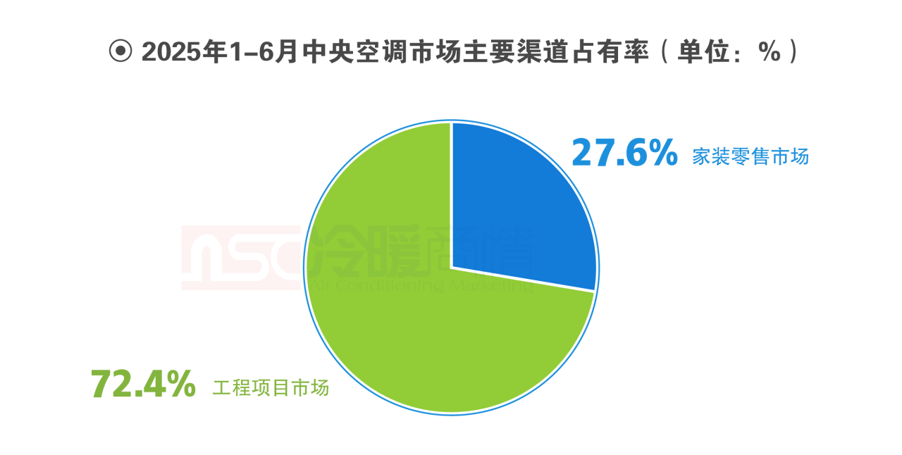 家裝零售與工程項目市場作為中央空調(diào)的兩大核心應用領域,在上半年呈現(xiàn)出不同的發(fā)展軌跡。冷暖商情統(tǒng)計,上半年家裝零售市場在中央空調(diào)整體市場中的占比約為27.6%,工程項目市場占比約為72.4%,兩者共同構成了中央空調(diào)市場的基本格局。