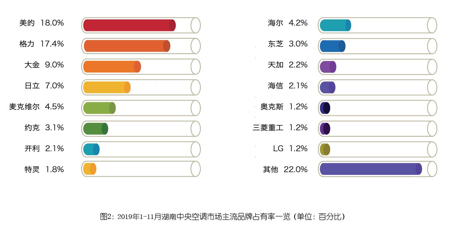 日韓品牌方面,大金牢牢占據(jù)第一位置;日立通過(guò)舉辦多場(chǎng)活動(dòng)保持相對(duì)穩(wěn)健的市場(chǎng)業(yè)績(jī),影響力和美譽(yù)度更加深入人心;東芝“冷暖風(fēng)水智”戰(zhàn)略的持續(xù)推進(jìn)獲得客戶(hù)認(rèn)可;LG磁懸浮變頻離心機(jī)斬獲頗豐,2019年中標(biāo)湖南長(zhǎng)沙南雅醫(yī)院等標(biāo)桿項(xiàng)目;三菱重工則深入布局湖南省縣級(jí)市場(chǎng),穩(wěn)扎穩(wěn)打拓展工裝、家裝零售市場(chǎng)規(guī)模;此外,富士通、三菱電機(jī)、三星、松下、荏原等品牌也在渠道推廣建設(shè)上有所建樹(shù)。