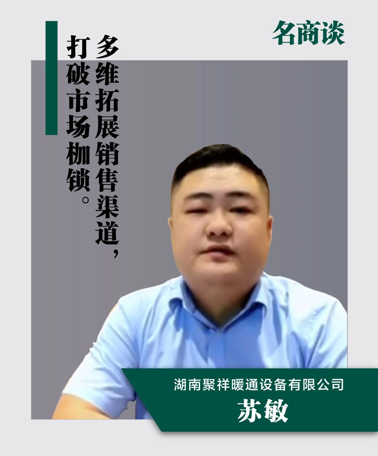 當前,暖通空調(diào)行業(yè)正經(jīng)歷“降速換擋“的轉(zhuǎn)型周期,市場發(fā)展步入“陣痛”,暖通空調(diào)經(jīng)銷商們來到發(fā)展的“十字路口”,如何走出自己的“新路子”“好路子”,這需要經(jīng)銷商們積極轉(zhuǎn)變思想,擁抱變化,探索營銷新模式。聚祥暖通總經(jīng)理蘇敏通過快速調(diào)整經(jīng)銷策略,創(chuàng)新營銷方式,成為湖南地區(qū)約克VRF空調(diào)的一級經(jīng)銷商, 他強調(diào)“多維探索銷售渠道,方能打破市場枷鎖”。